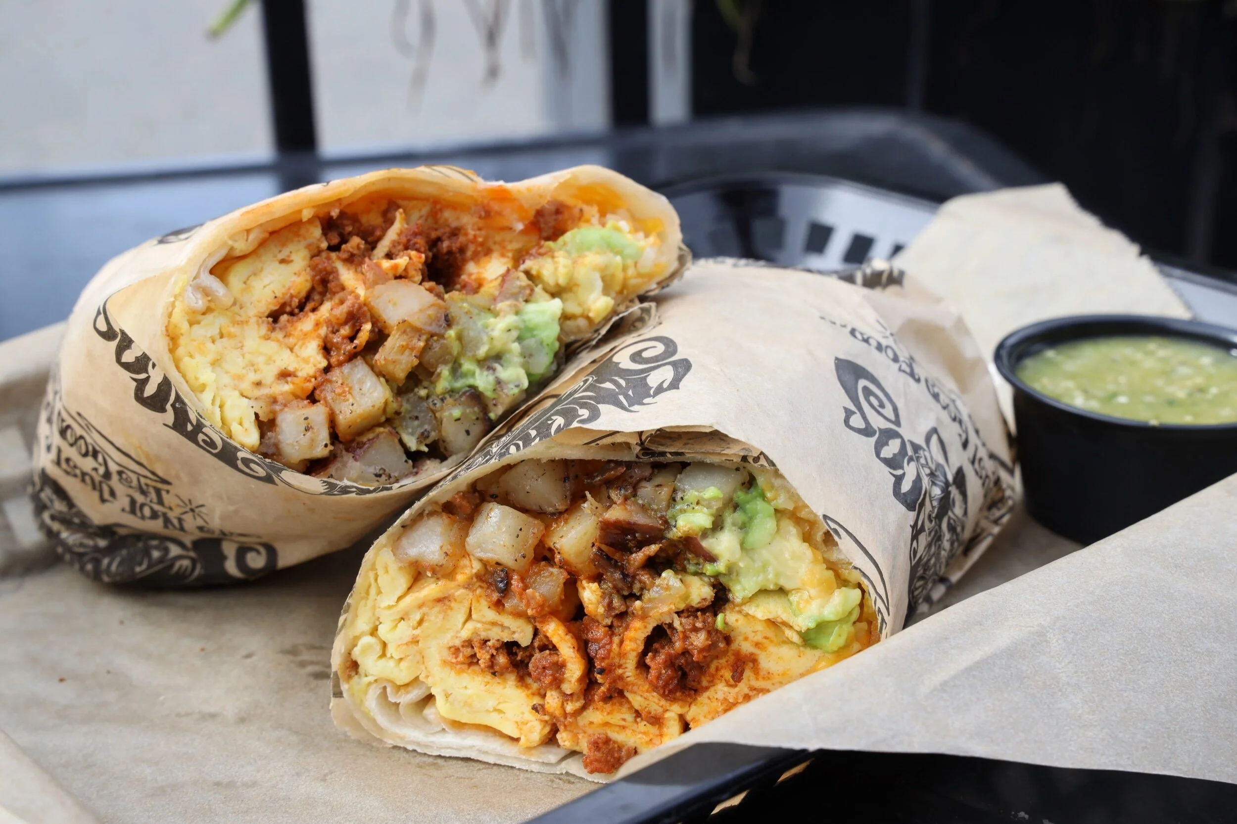 The breakfast burritos are AMAZING. I always order the “Sawed Off,” which is fresh eggs, skillet potatoes, and cheddar jack wrapped in a grilled flour tortilla with your choice of meat: applewood smoked bacon, country sausage, chorizo or boneless chicken breast.