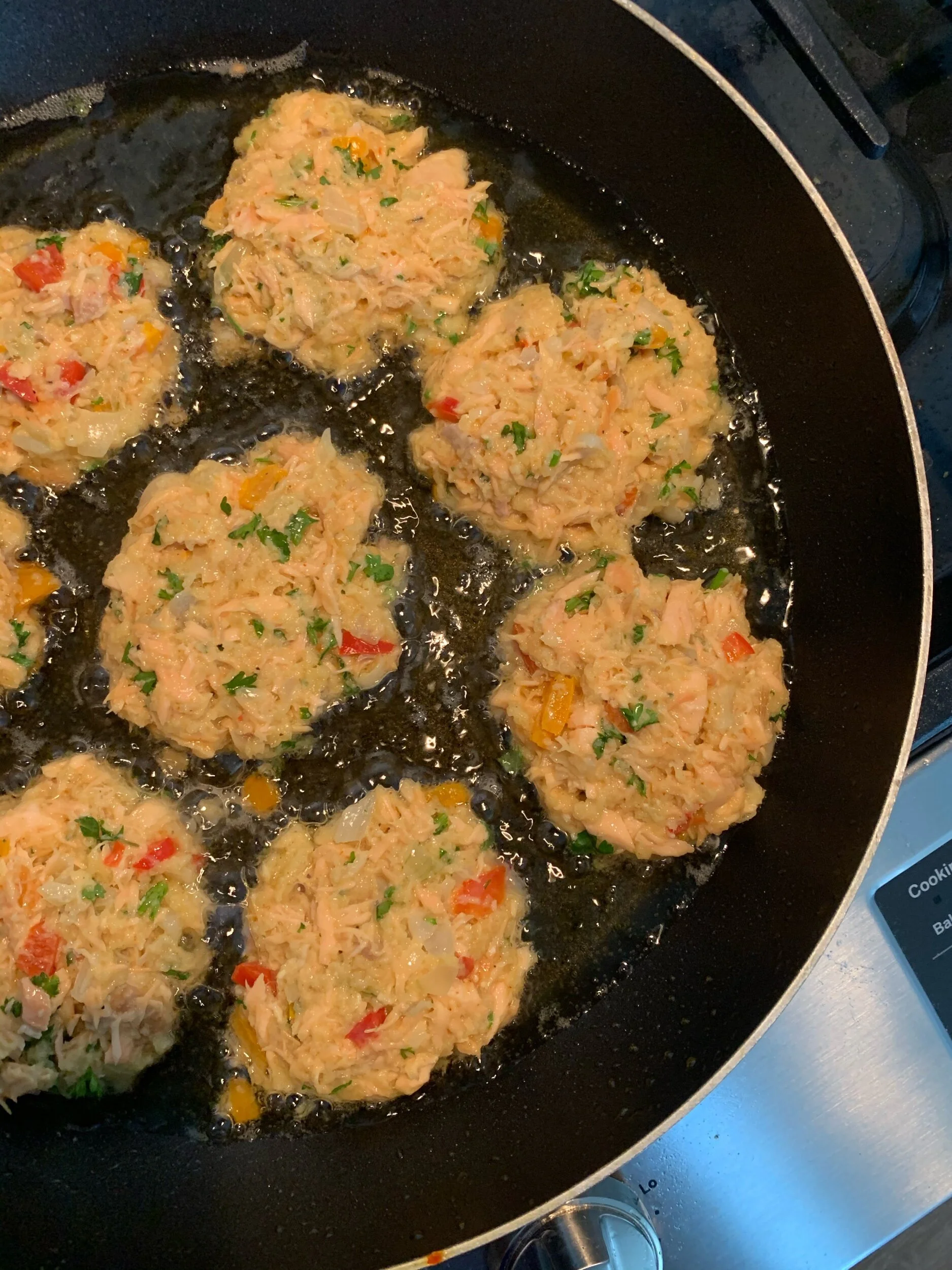 My neighbor’s sister made some salmon cakes a few weeks back - in the middle of this pandemic. Her husband refuses to eat leftovers though, so she brought them over for her sister to eat. Like a good friend, my neighbor funneled a few my way - they were delicious! Needless to say, I wanted the recipe so I could make them myself.